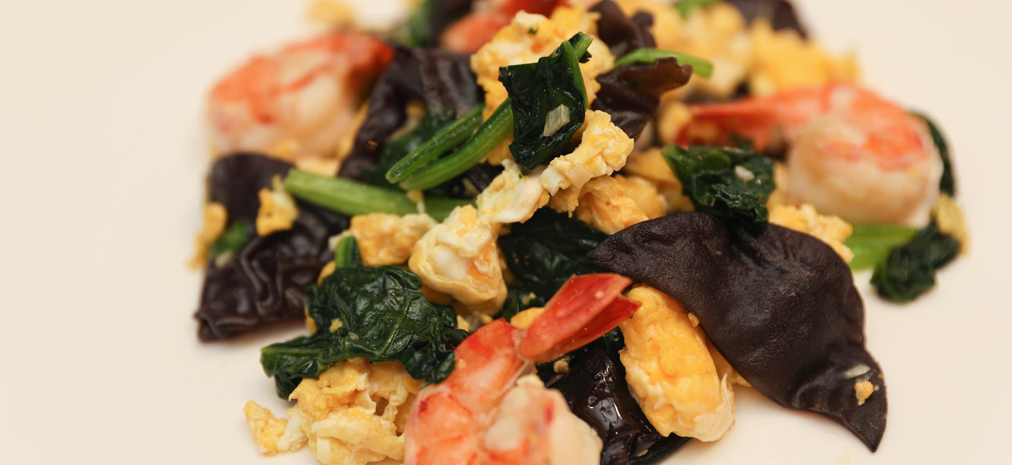 エビとキクラゲの卵炒め。